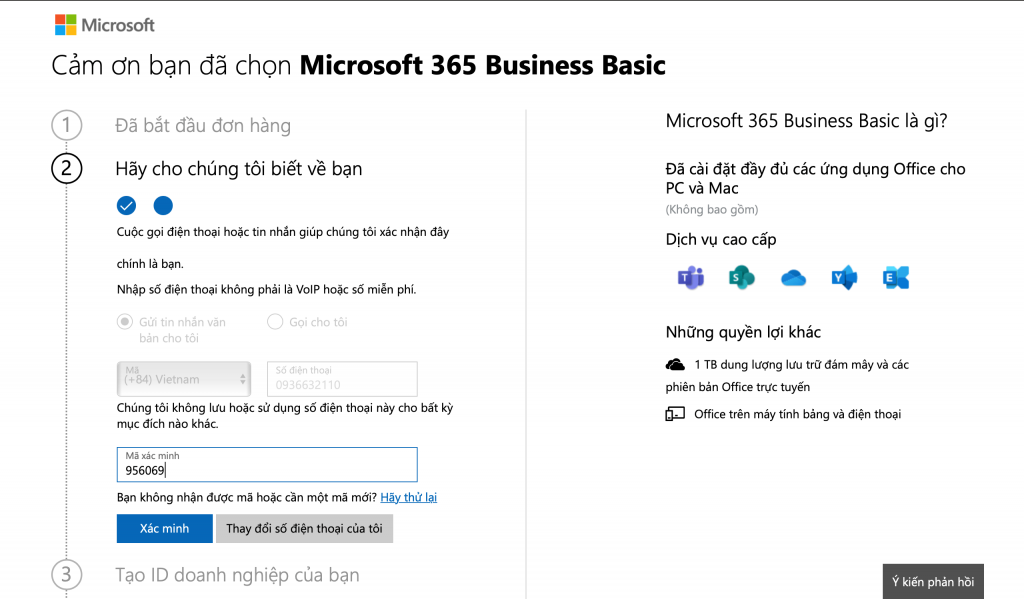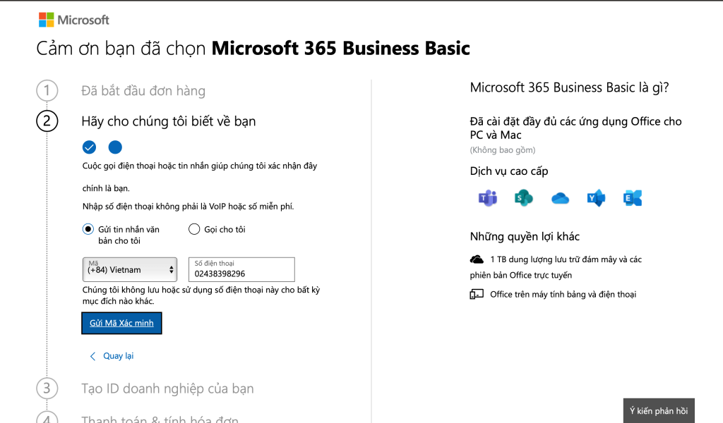 Xác nhận danh tính bằng cách nhận mã xác nhận do Microsoft cung cấp thông qua tin nhắn SMS hoặc cuộc gọi