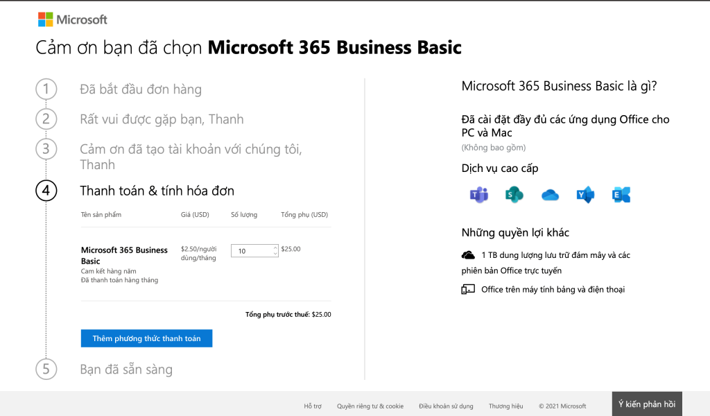 CÁC BƯỚC ĐĂNG KÝ DỊCH VỤ MICROSOFT 365 TRỰC TIẾP TRÊN WEBSITE CỦA MICROSOFT: