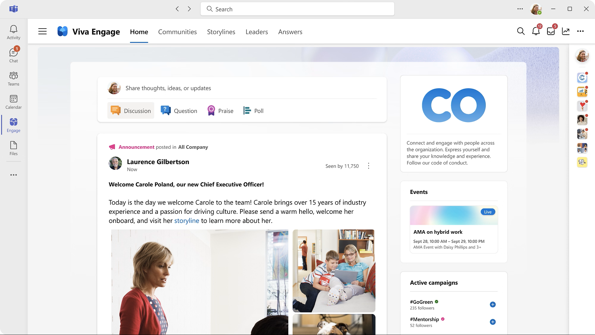 Kết nối & gắn kết nhân viên: Giải pháp trọng tâm Viva Connections, yếu tố này giải quyết bài toán “đứt gãy thông tin” và cảm giác bị cô lập khi nhân viên làm việc từ xa hoặc tại các chi nhánh khác nhau. Xây dựng văn hóa đồng nhất, giúp nhân viên cảm thấy tiếng nói của mình được lắng nghe thông qua các cộng đồng sở thích và chuyên môn.
